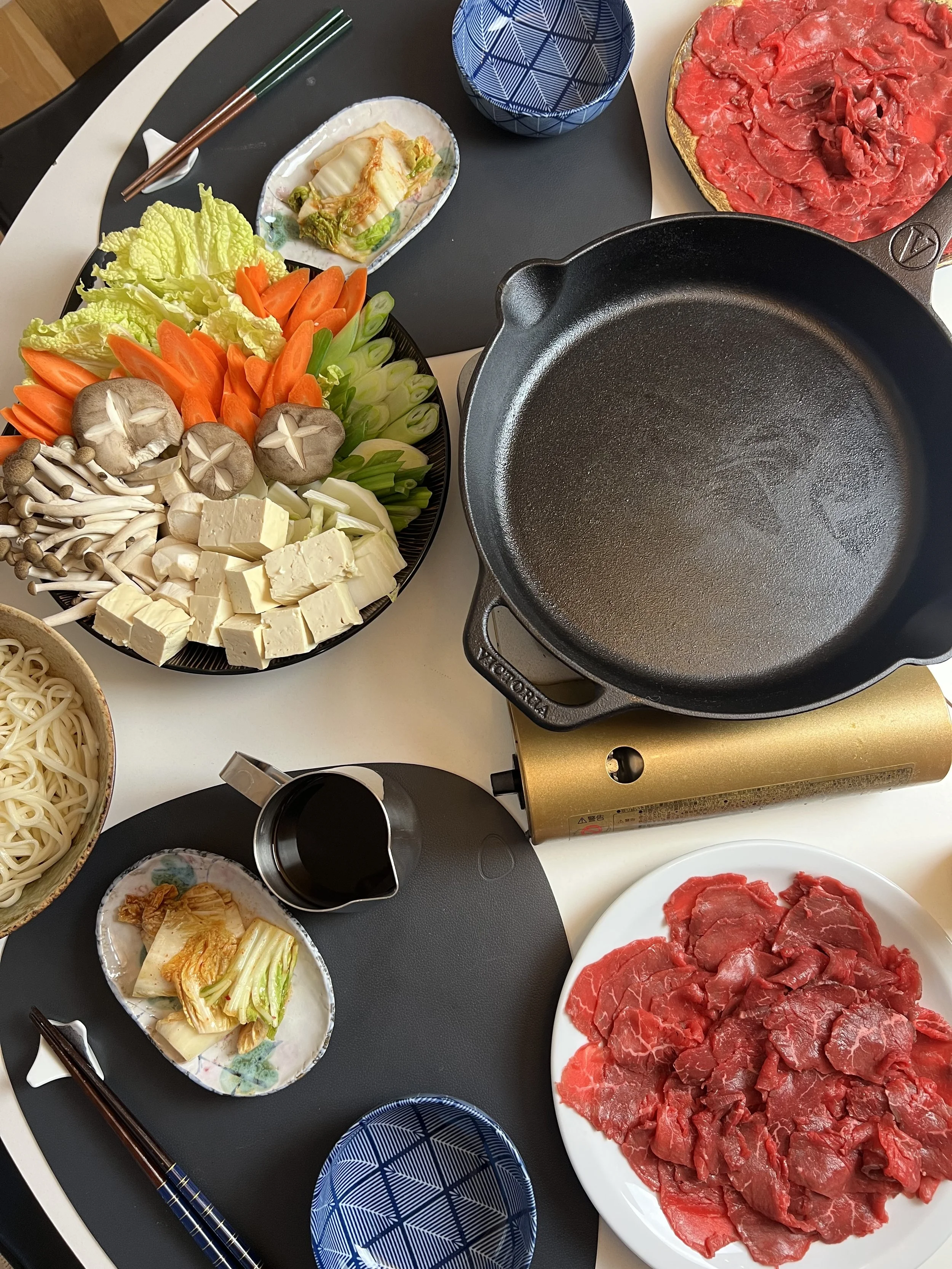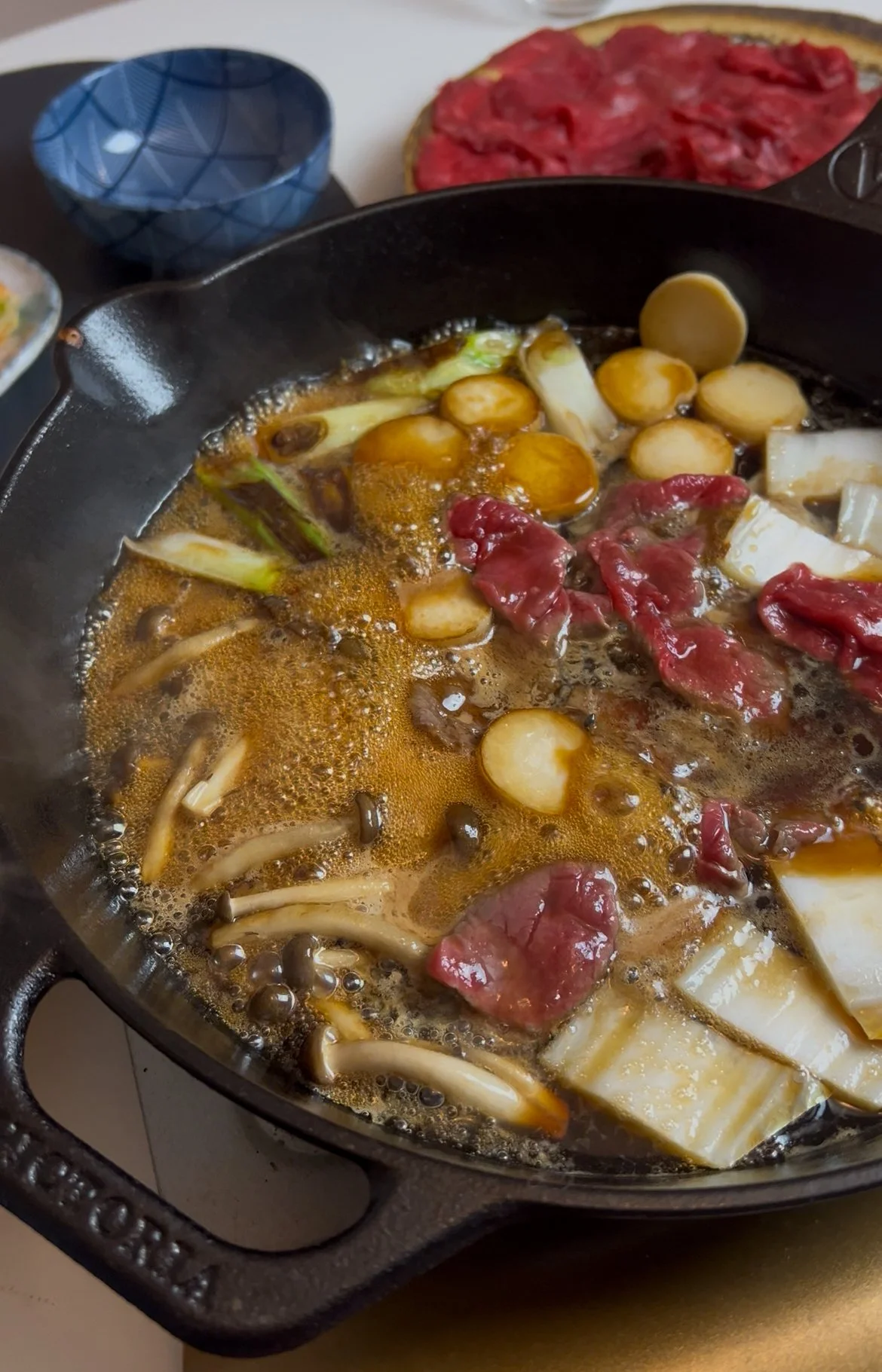 Sukiyaki er nok den mest kendte form for hotpot ret i Japan, og den perfekte smagskombination mellem den søde fond, salte fra sojaen og den kraftige umami som opstår når kød, tofu og grøntsager bliver simreret over længere tid.